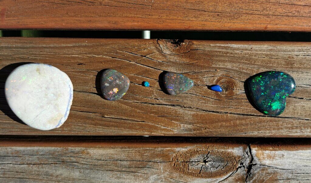 Compared with it’s better known opal mining cousin, Coober Pedy, Andamooka’s opals are less prolific but generally more valuable in quality. After a quick demonstration of how to noodle (search for opals), Peter took us out the back of the community hall (a building he and a team of locals dismantled in Maralinga, the materials transported to Andamooka and rebuilt) and pulled out a selection of the opals he has found, cut and polished over the years.